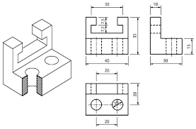Por ejemplo, esta pieza según la escala usada para las vistas tendrá un tamaño u otro, pero sus cotas serán las mismas siempre (las medidas reales)